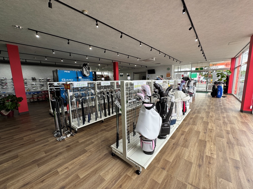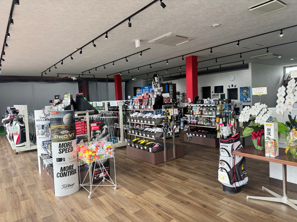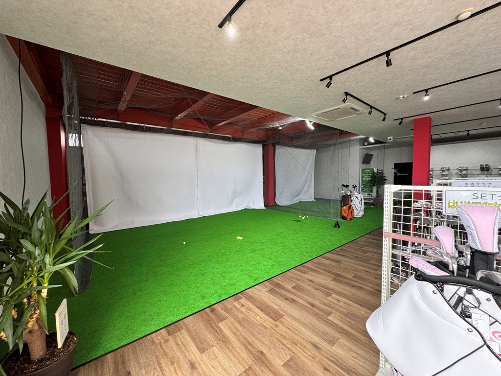 広々した店内には試打室やシュミレーションゴルフ設備を完備
